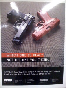 ‘In NYC, it’s illegal to paint a real gun to look like a toy, and it’s illegal to sell a toy gun that looks real.’ Okay then…dually noted. Dually noted.